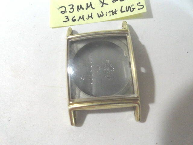 plate top stainless back. 23mm by 25mm without lugs. 36mm long with lugs.
