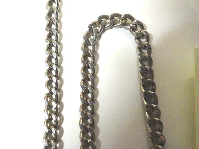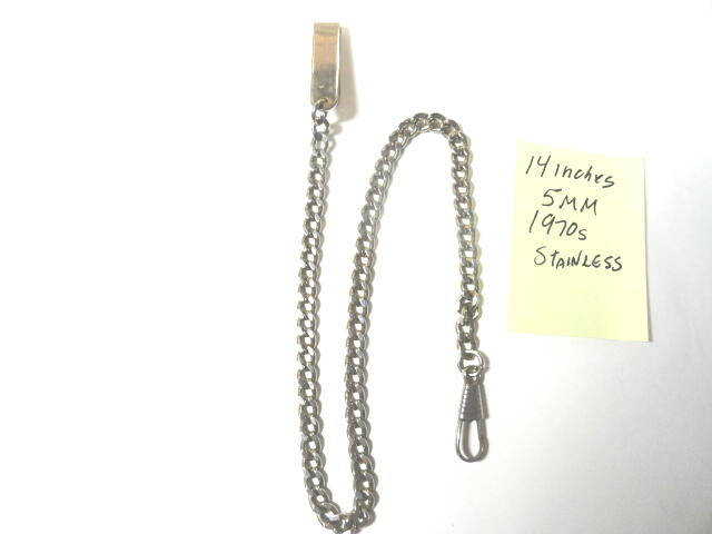 Vintage 1970s pocket watch chain. Stainless steel 14 inches 5mm.
