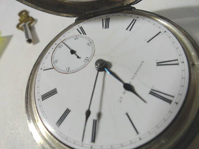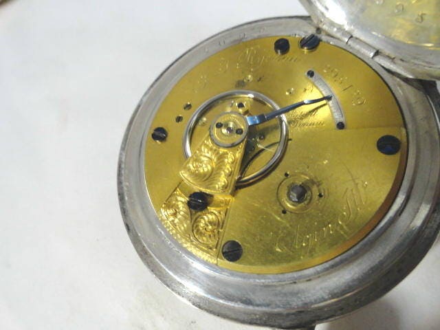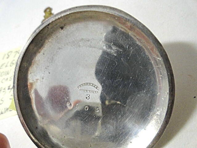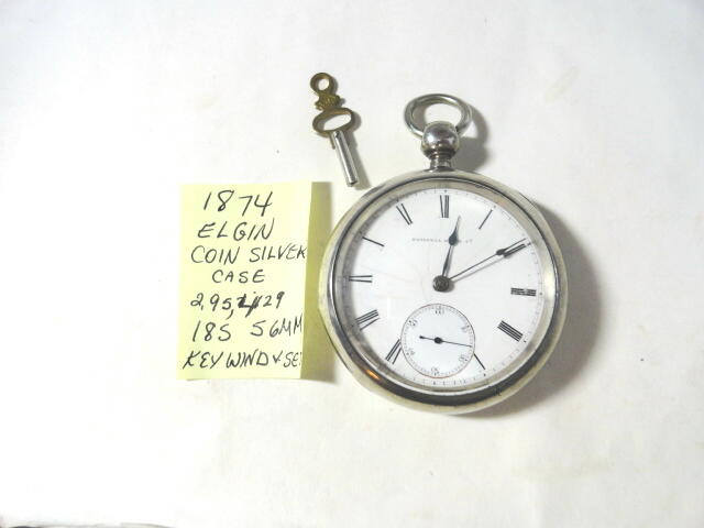 1874 Elgin coin silver pocket watch. Key wind. Key set. Running. 18 size 56mm. Movement