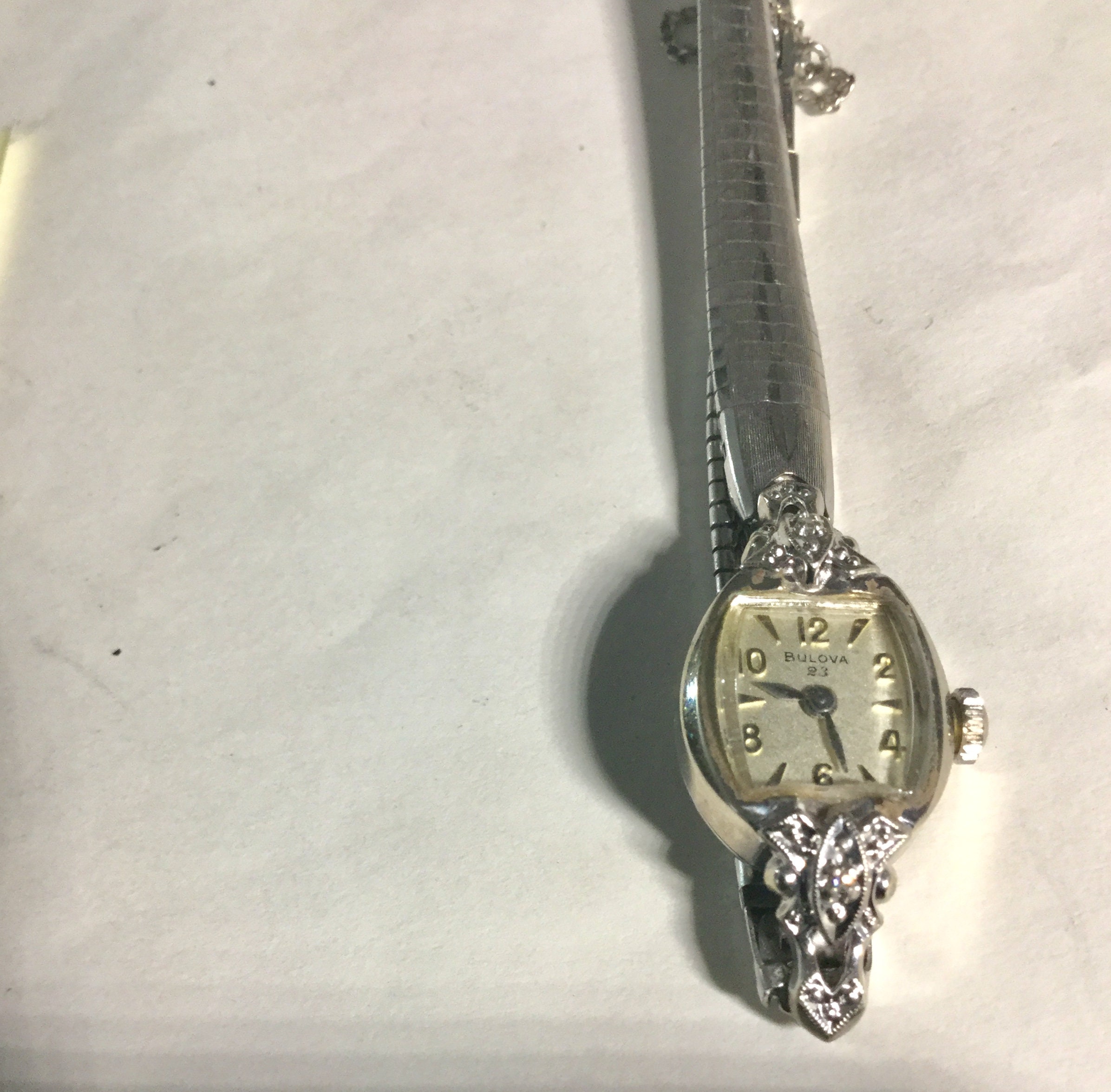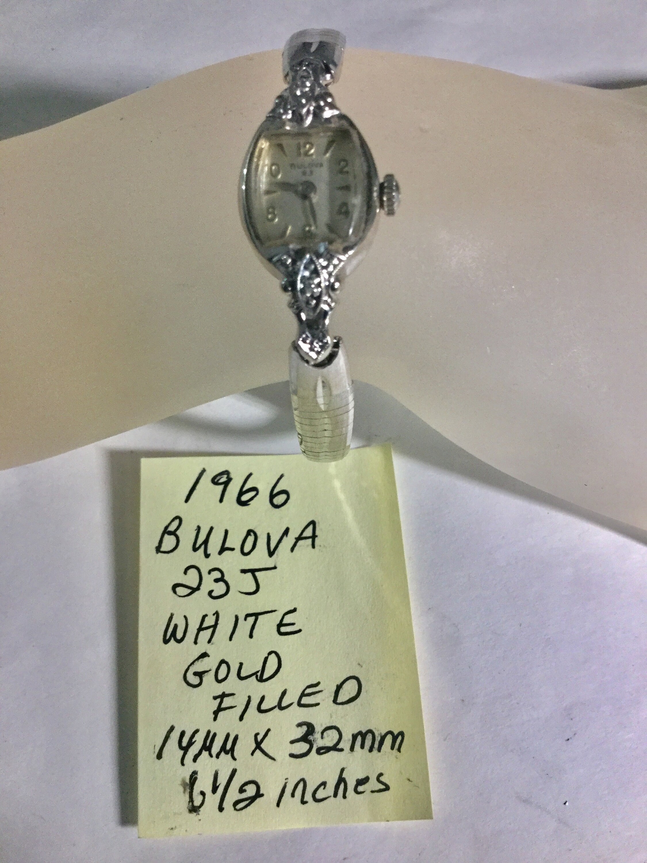1966 Ladys Hand Wind 23 jewel Bulova White Gold Filled Watch