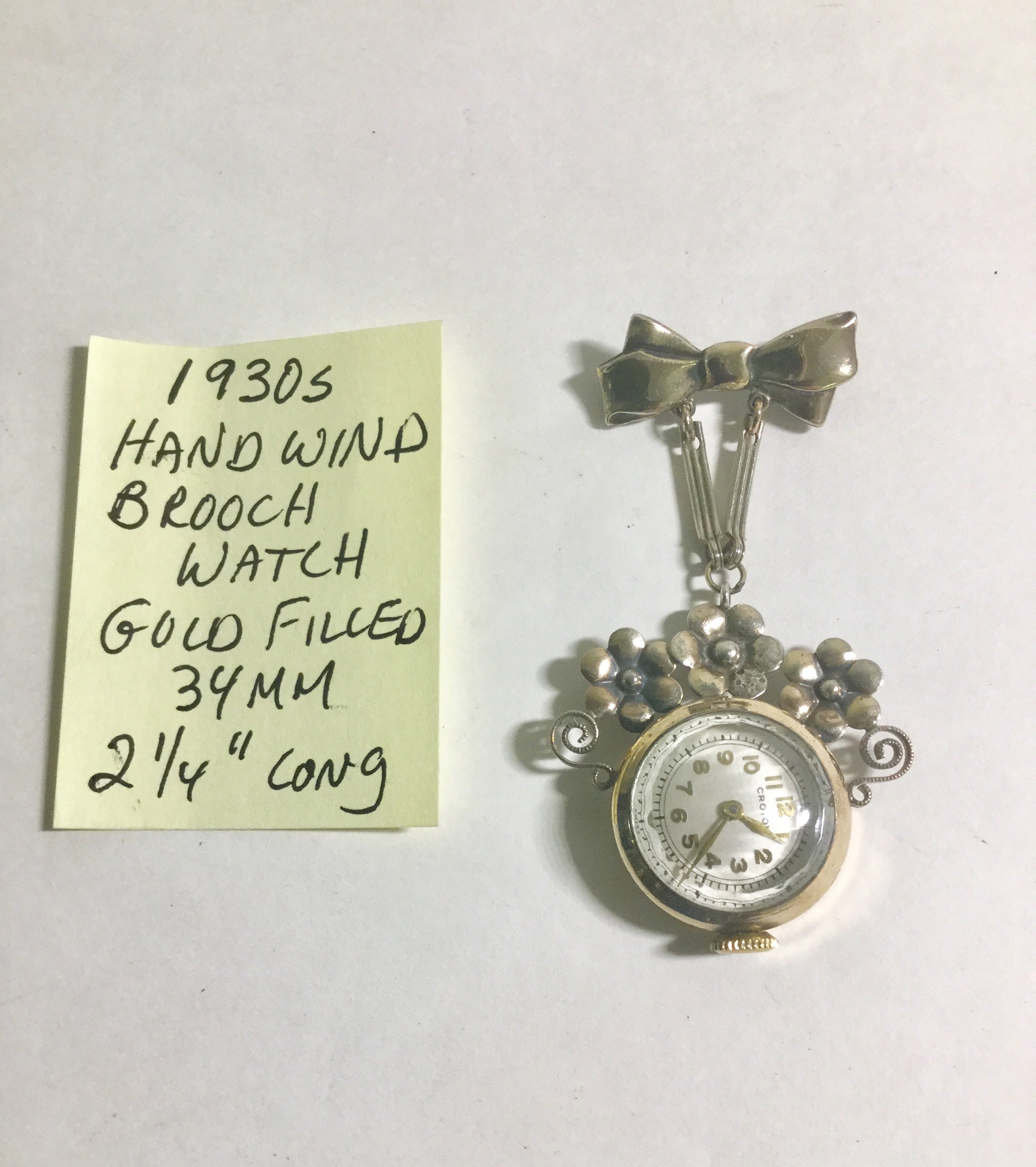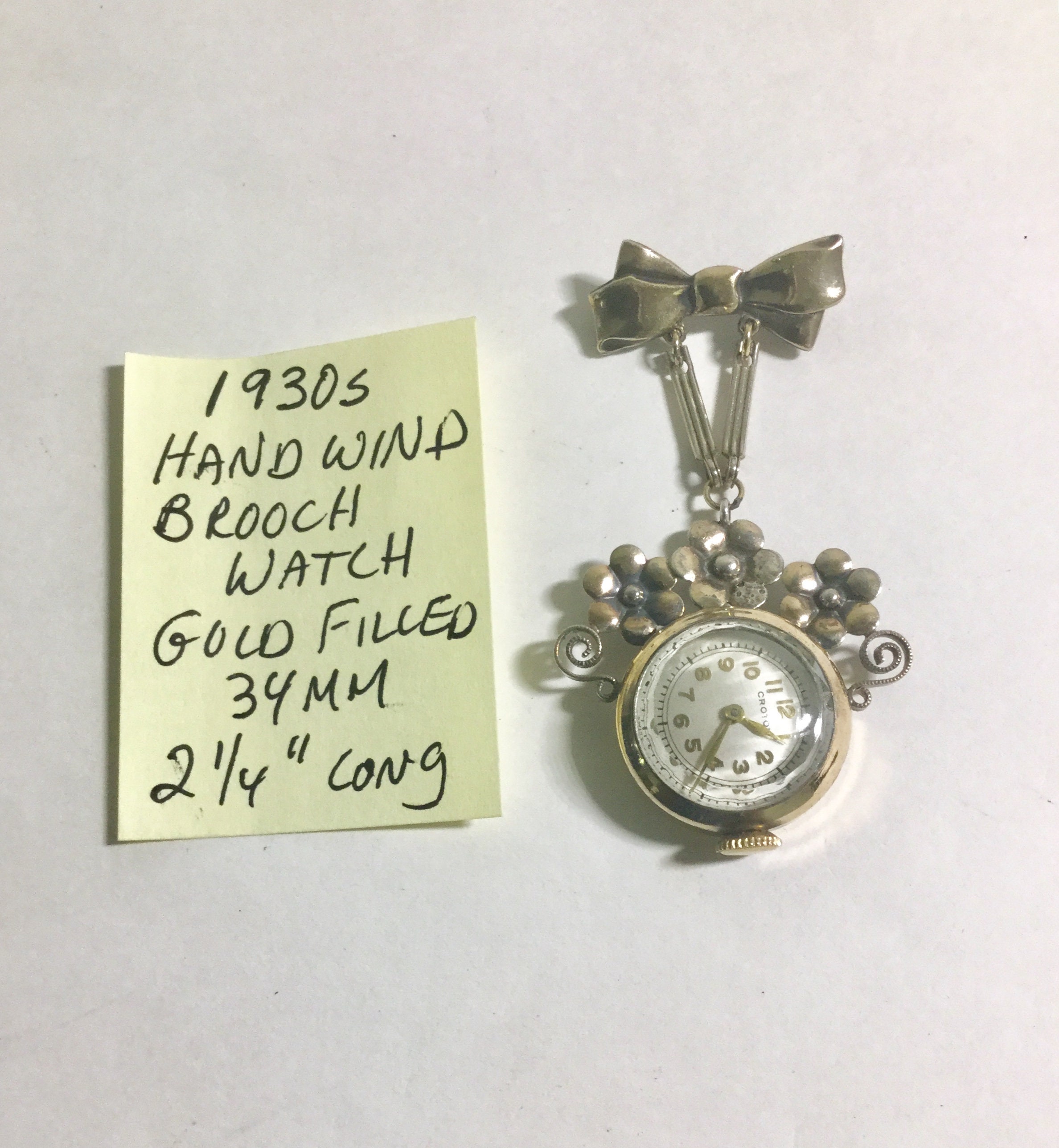 1930s Gold Filled Croton Hand Wind Watch Brooch